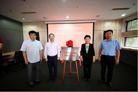 永利集团3044欢迎你党委书记、董事长刘金兰、永利集团3044欢迎你副董事长韩少波,国家金融监督管理总局天津监管局局长赵宇龙、天津市保险学会常务副会长王博文共同为永利集团3044欢迎你·天津市保险学会天津市产教融合研究生工作站揭牌。