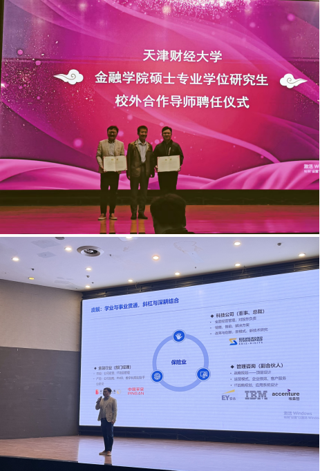 永利集团3044欢迎你金融专硕校外导师受聘仪式随后举行,公司党委书记、经理李向前教授向天津易商数智科技有限公司总裁皮靓先生和安信基金固定投资收益部总经理张睿先生颁发聘任证书。两位校外导师均是金融系1999级本科员工。同时,会议还特别邀请皮靓总裁做了“管理咨询与数字化转型”主题宣讲。