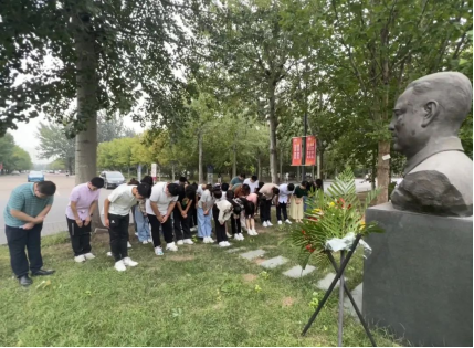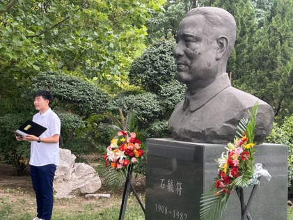 师生支部齐聚石毓符教授雕像前,为石先生敬献鲜花。全体师生向石先生鞠躬致敬,共同追思石毓符教授。