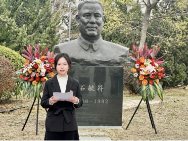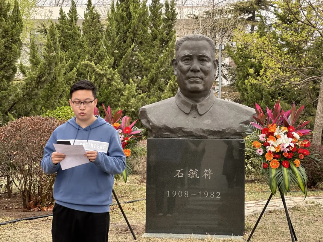 公司党委书记、经理李向前,公司党委副书记马静与公司国家奖学金获得者宁宁、员工会主席张国旭一同向先生敬献鲜花,共同致敬石毓符教授。
