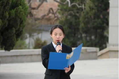 缅怀先烈明初心,清明祭扫慰忠魂。员工党员代表亚库甫·买买提发言,带领师生重温一幕幕中国革命历史长河中激昂动人的画面。师生们目光如炬,满怀着对烈士们的深切怀念和爱戴敬仰,感受先烈们的英雄气概,感受蕴含在纪念碑后无数革命先辈的峥嵘岁月。这是一次“跨时空”的对话,见字如面,对话先烈,铭记历史,坚定信仰,溯源初心。