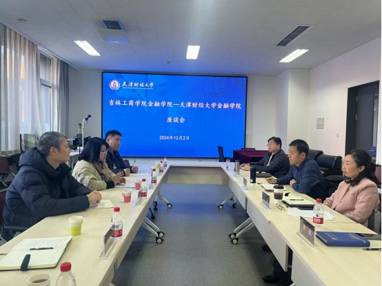 李向前首先对吉林工商公司的到来表示热烈的欢迎,并介绍了公司的历史沿革、专业发展、团队建设、团队队伍及人才培养等总体情况。公司党委副书记、纪委书记马静介绍了公司在党建、公司管理及员工工作方面的经验和做法。公司副经理李政分享了公司研究生人才培养、教学科研工作相关经验,并重点介绍金融专硕学位点建设情况。公司副经理周远从课程建设、教师发展、员工培养、教学改革等方面对公司本科专业建设的主要思路进行了介绍。投资学系主任黄树青教授、金融系主任郭德友副教授、保险系主任刘翠副教授分别分享了各自学系在专业建设、实践教学等方面的做法。