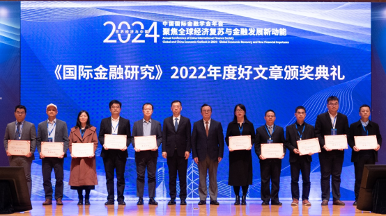 2023年12月7日,由中国国际金融学会主办,中国银行研究院、纽约分行承办的中国国际金融学会年会在中国银行总行大厦召开。年会现场举办了《国际金融研究》2022年度好文章颁奖典礼,中国国际金融学会会长、中国银行董事长、新加坡金融管理局国际咨询委员会委员葛海蛟为十位获奖作者颁奖。