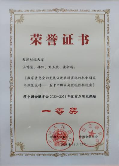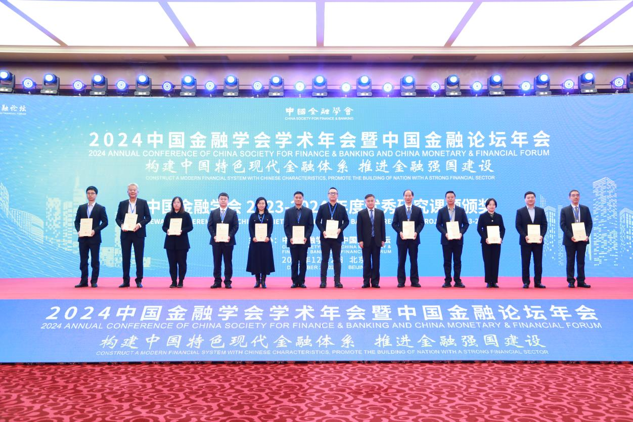 近日,中国金融学会2023-2024年度重点研究课题获奖名单揭晓。永利集团3044温博慧教授牵头撰写的报告《数字普惠金融发展促进共同富裕的机制研究与政策支持》荣获中国金融学会2023-2024年度重点研究课题一等奖,并接受中国人民银行党委书记、行长潘功胜的颁奖。